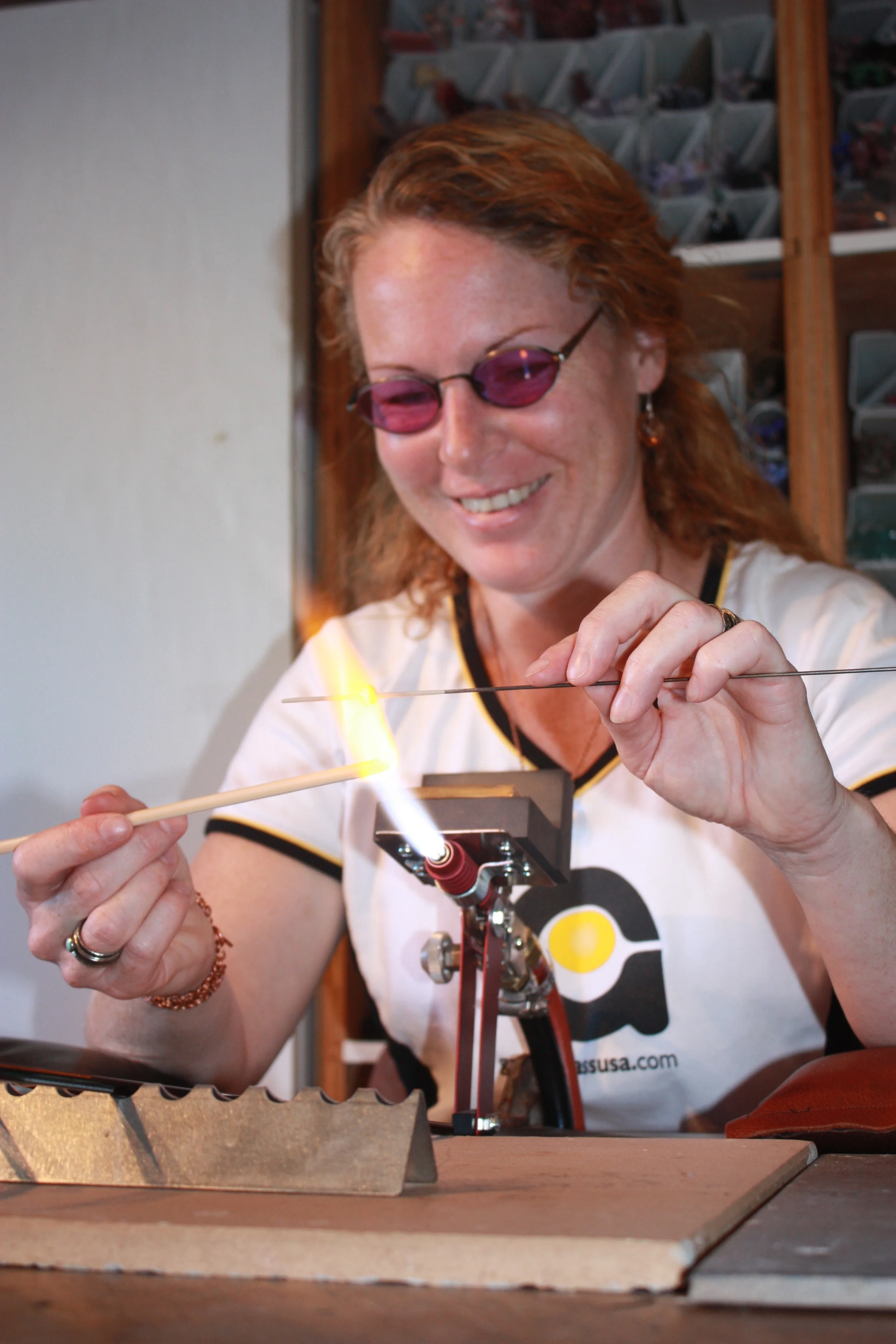 After her first introduction to glass in 2004 she spent many years taking workshops from the many talented artists in the Pacific Northwest. Her first show was in 2011 and she moved into teaching in 2012 and has continued to exhibit and teach since. She was the Canadian Regional Director for the International Society of Glass Beadmakers and has participated on several gallery boards. She works from her home studio in central Alberta.